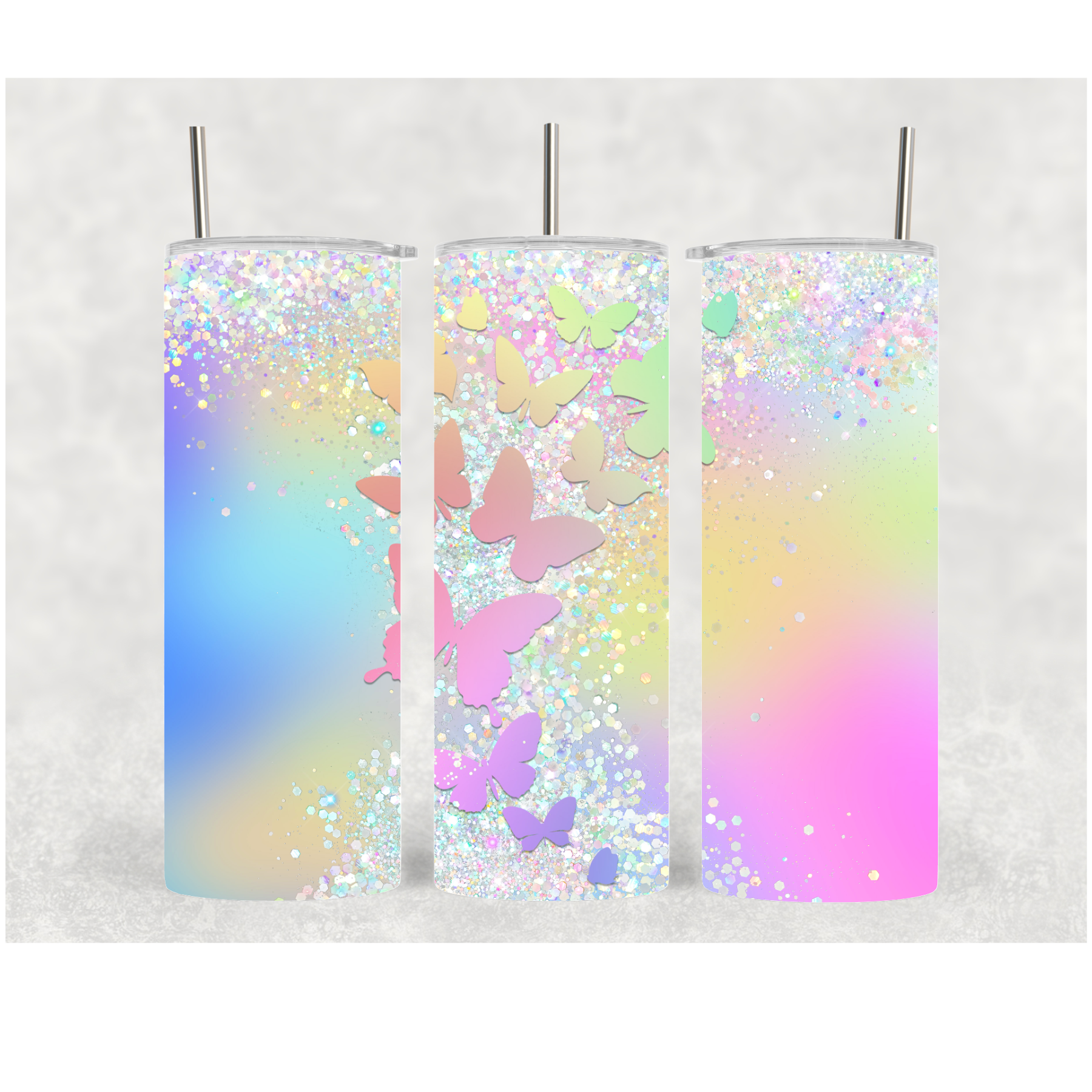 20oz Pink Glitter Butterfly